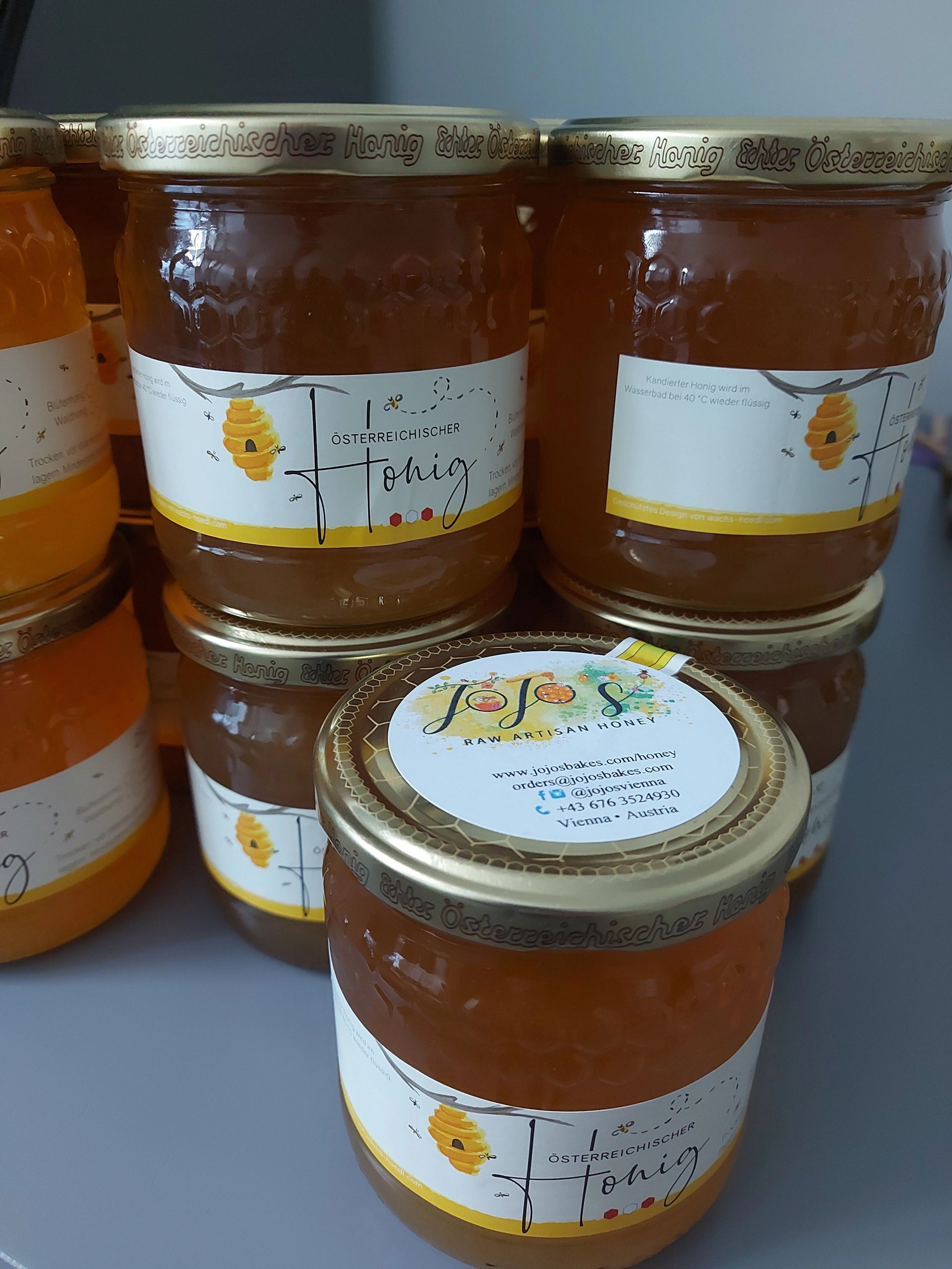 Each honey season I will be offering raw honey, extracted from my own beehives for all to enjoy. First come first serve. The type/taste depends on the time of year of extraction and which flowers were around during foraging. This batch is wildflower honey or Blütenhonig in German.